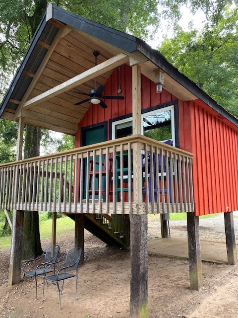 Ласкаво просимо до нашого красивого будинку на дереві з дерев 'яним каркасом! Цей витвір мистецтва, побудований вручну місцевим теслєю Девідом Гріном, виходить на річку Окмалгі. Наш двоповерховий будинок має два ґанки, спальню на горищі (повноцінне ліжко), вітальню (місце біля вікна/бар/односпальне ліжко) та кухню (чавунна раковина з ножним приводом, вулична піч, зона для приготування їжі, посуд, кухонне начиння та багато іншого). На даний момент (весна 2026 року) немає туалету в приміщенні. У нас є туалет у стилі кемпінгу (Luggable Loo).