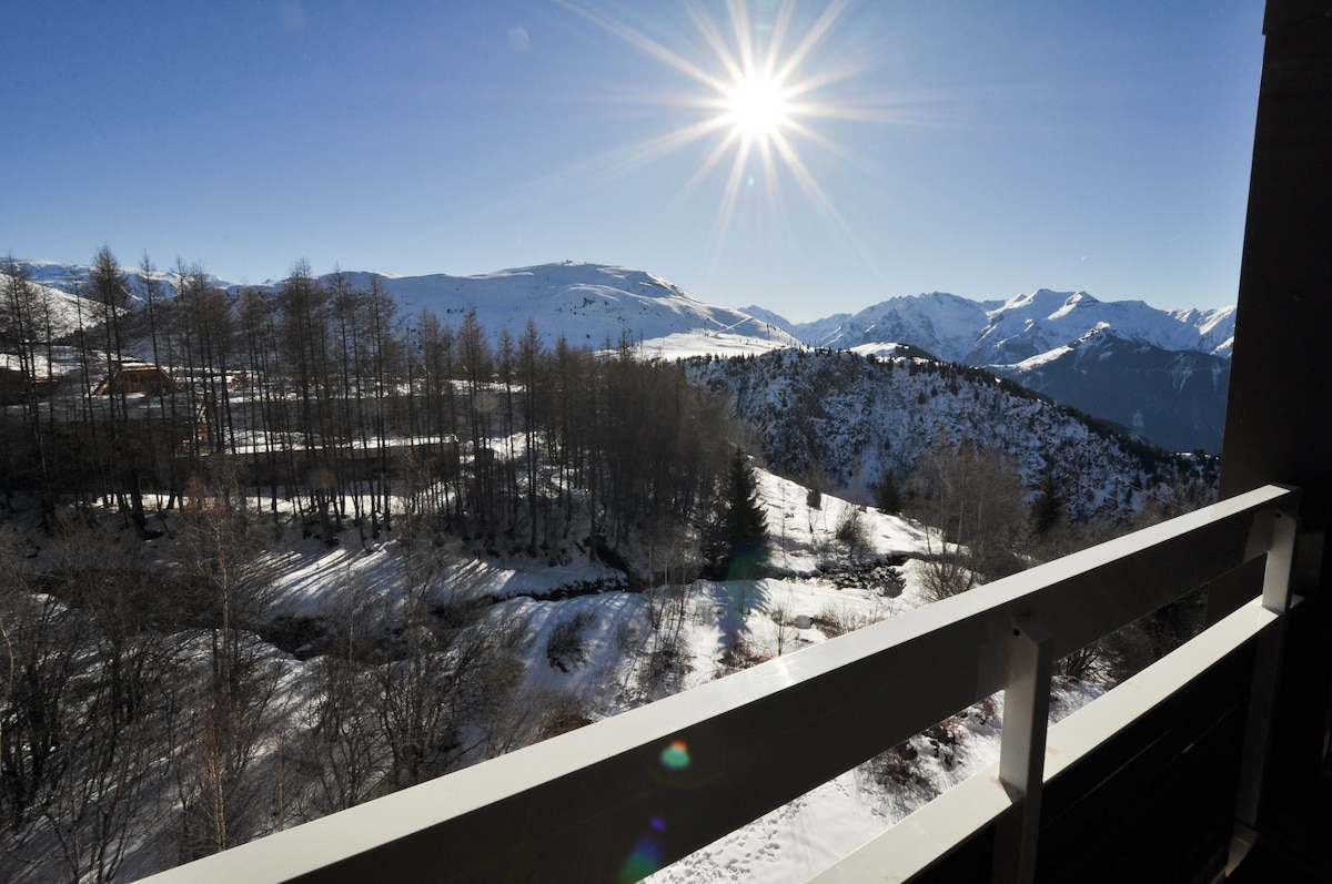 Резиденція Les ALBERGES Біля підніжжя схилів ⛷( 2 хвилини від Tk Belle Etoile і 5 хвилин від Jandri Express), навпроти санного бігу та в центрі 2 Альп 🏔 Esf "Belle Etoile" 2 хвилини пішки Esf "Côte Brune" 5 хвилин пішки Вихід на південь . Великий балкон Зручно: - ВЕЛИКА вітальня / кухня. - 1 спальна зона з двоярусним ліжком - Якісний диван-кровать - Окремий туалет і ванна кімната - Прибирання та постільна білизна включено. - Настільна парковка на вулиці закрита воротами.