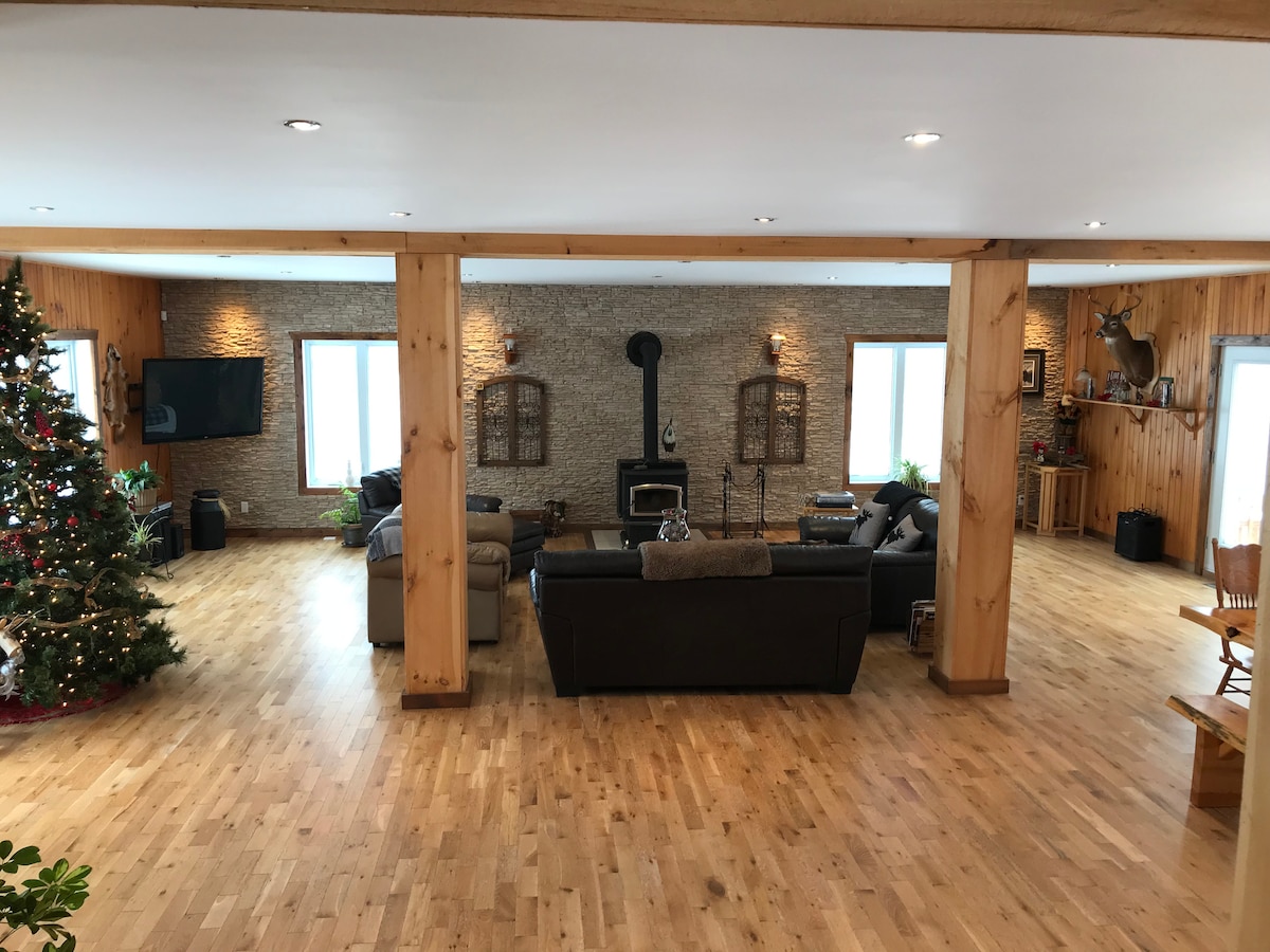 Чудове шале на природі, яке може вмістити до 16 осіб. Гості мають доступ до спа-салону та камінів у приміщенні/на відкритому повітрі. Спокій гарантовано. Ви будете зачаровані на перший погляд! Розташоване менш ніж за 2 хвилини від селища, де є продуктовий магазин, Saq, пекарня, невеликі ресторани та багато іншого. У 5 хвилинах їзди від гори Сови, де можна спуститися по схилах із захоплюючим видом на озеро Мемфремагог. Доступ до муніципального пляжу на озері за 5 хвилин. 25 хвилин від JayPeak Mount!