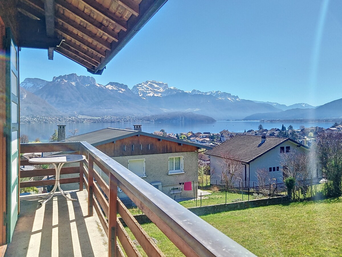 Елен і Мішель пропонують вам, за 4 км від Аннесі, повністю незалежну частину у своєму сімейному будинку. Цей будинок, з якого відкривається приголомшливий вид на озеро та гори, знаходиться в тихому та зеленому середовищі.