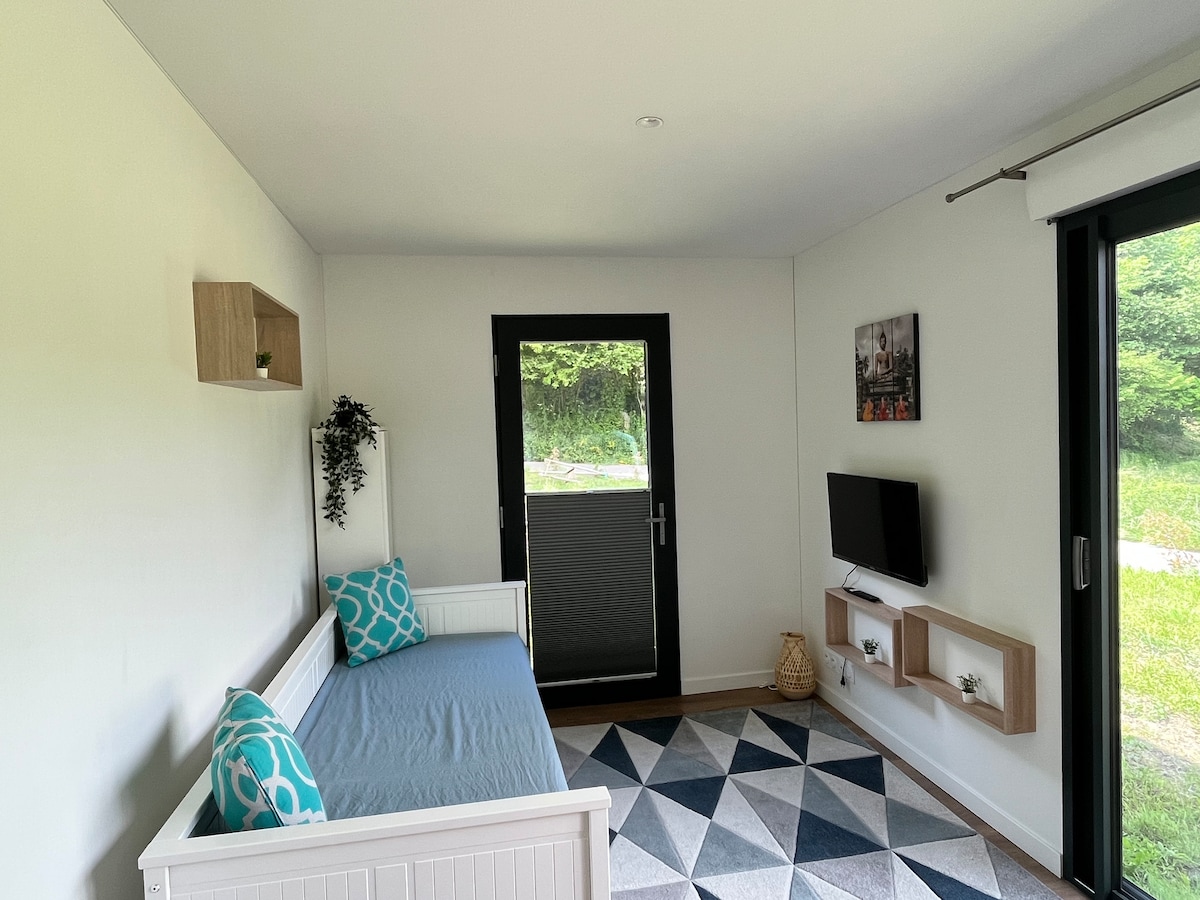Незалежна студія на першому поверсі, нещодавно (2023 рік) з ванною кімнатою та окремим туалетом. Ви можете насолодитися огородженим садом площею 500 кв. м з шезлонгами, затіненою зоною для обіду на відкритому повітрі. Тут ми любимо тварин, і ви можете з собакою, кішкою, верблюдом. Повністю обладнана справжнім ліжком із зручним матрацом Bultex та повною кухнею з холодильником, індукційною плитою, кавоваркою та чайником. Постільна та рушники та рушники надаються. Пральна машина за 5 євро, мийний засіб включено.