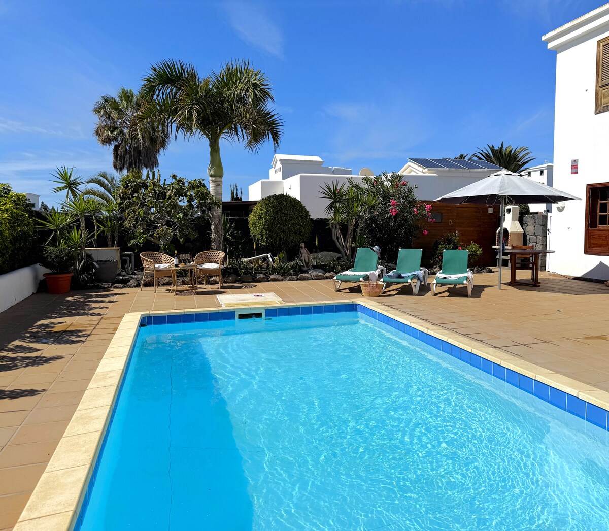 Наш будинок розташований поблизу моря, пляжів та автобусної зупинки, з якої можна сісти на автобус, який доставить вас до Плайя-Бланка за 5 хвилин. Це ідеальне місце для відпочинку для пар або сімей з дітьми, з чудовою температурою також взимку. Відкритий патіо добре захищений від вітру. Будинок повністю обладнаний телевізором, Wi-Fi, барбекю, басейн з підігрівом і максимально комфортний, оскільки саме тут ми проводимо відпустку, коли приїжджаємо до Лансароте.