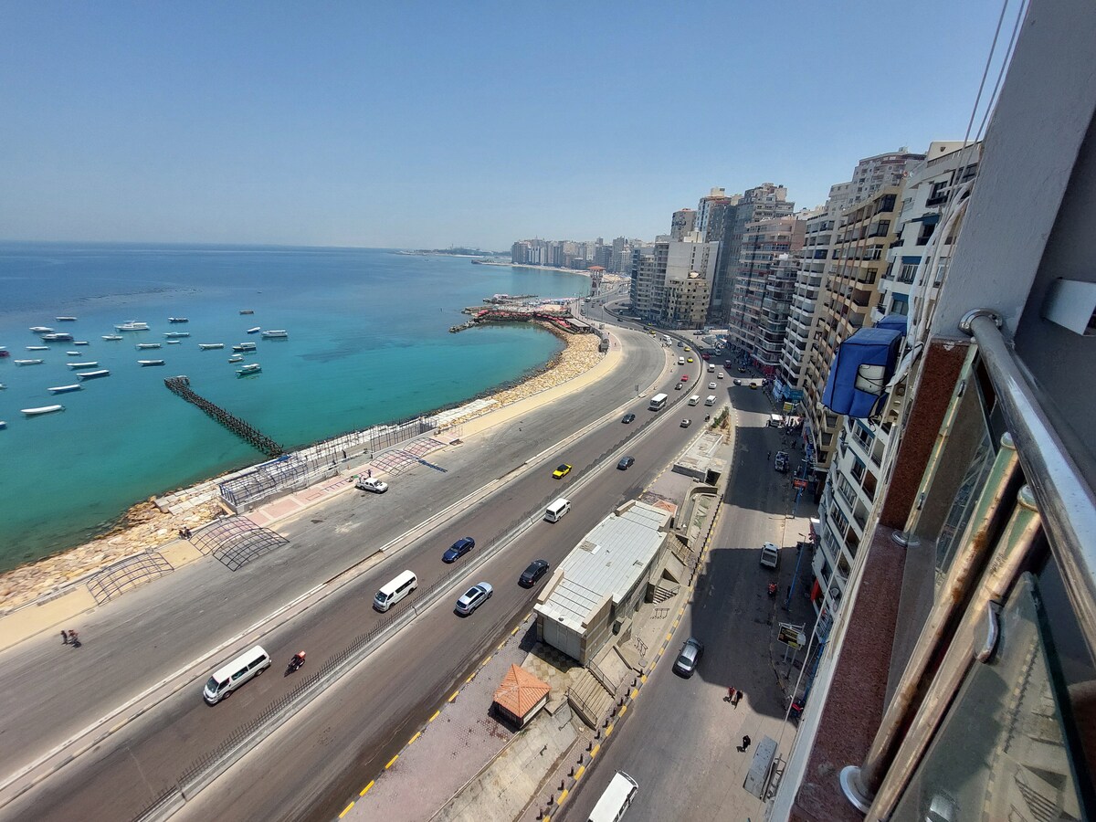 The best panoramic view of the sea from 2/3 of the rooms on the 17th floor (2 elevators) with all equipment for a comfortable stay The best location in Alex: * in front of the famous Beau-Rivage Beach * You can see Miami Island and (45th Bridge ) from the apartment clearly. * Two min. from the main (45th St.) & Fathallah hypermarket * 5 min. from Khalid Bin Al Waleed St. (but the building is in a quiet area) * 10 min. from Montazah Palace