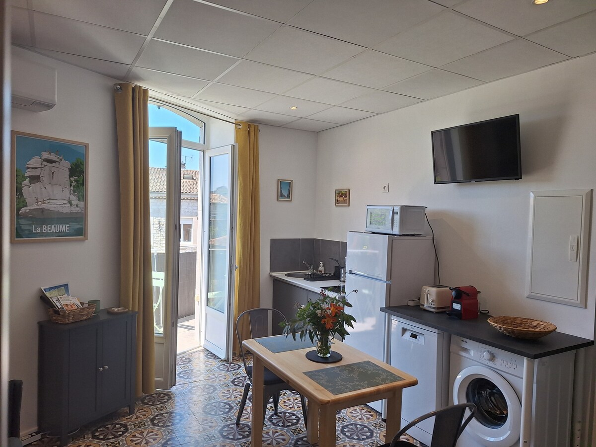 Чарівна студія площею 18 м² поблизу історичного центру Везон-ла-Ромена. Це функціональне й затишне помешкання, яке ідеально підходить для відпочинку після цікавого дня, як для одного гостя, так і для пари. Насолоджуйтеся приємним приватним садом, що є рідкістю в центрі міста, під час сніданків або тихих моментів. Чудове розташування, усе розташоване неподалік: стародавні пам'ятки, магазини, ресторани та провансальські ринки.