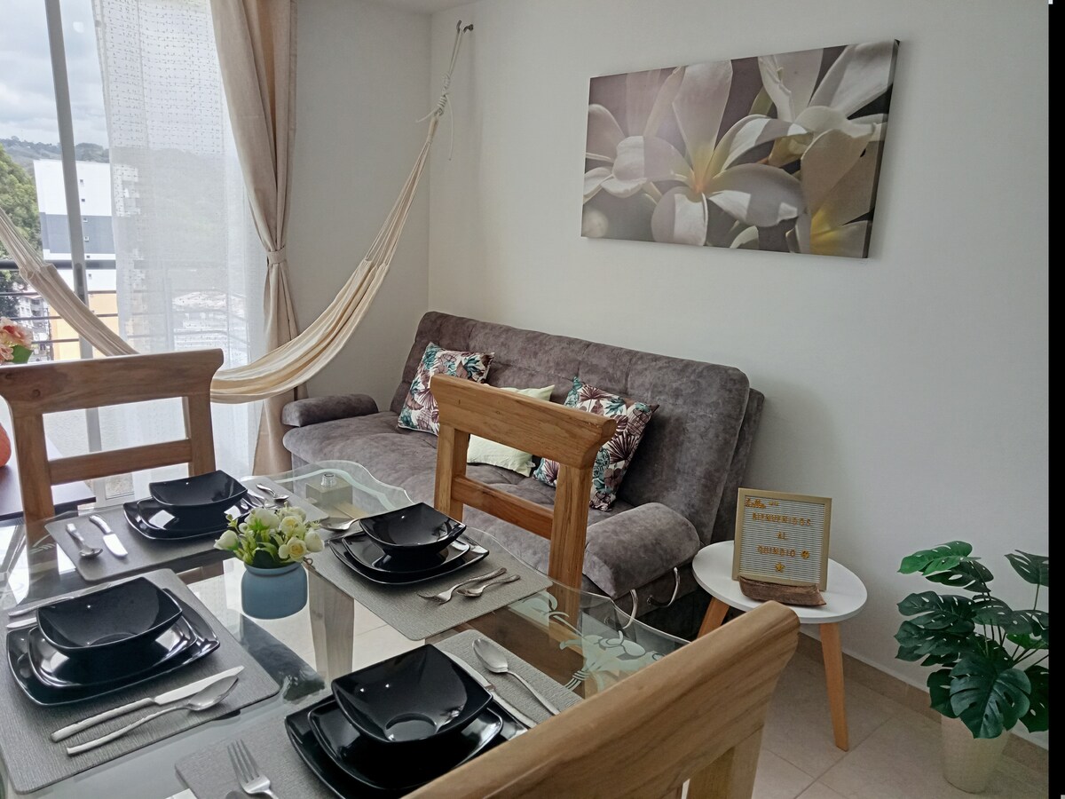 Квартира для тривалого або короткого перебування. Тут є все необхідне, щоб гарантувати неперевершене перебування та насолодитися тим, що пропонує наш прекрасний відділ Кіндіо, ми надсилаємо всю інформацію через соціальні мережі основних туристичних напрямків з GPS орієнтацією для легкої подорожі та насолоди нашими прекрасними пейзажами. Від нашої гастрономії. Це ідеальне місце для відпочинку... насолоджуйтеся кавовими фермами. З його пам 'ятками та парком