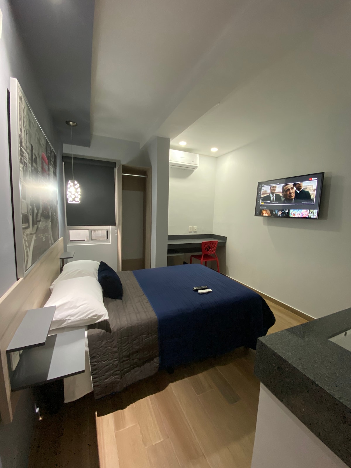 У iSuites ми пропонуємо розміщення в центрі Колонія-дель-Валье, Сан-Педро-Гарца-Гарсія. Гарантовано лише концепцію номерів з найнижчими стандартами готелю та найнижчою ціною в регіоні. Доступ без ключа. При бронюванні ви отримаєте ключі доступу до своєї кімнати. У номері є кондиціонер, смарт-телевізор, Wi-Fi Інтернет, робочий стіл, міні-холодильник, власна ванна кімната з душем. Включає туалетні принадлежности та чисті рушники. Наше місцезнаходження неперевершене в Валле.