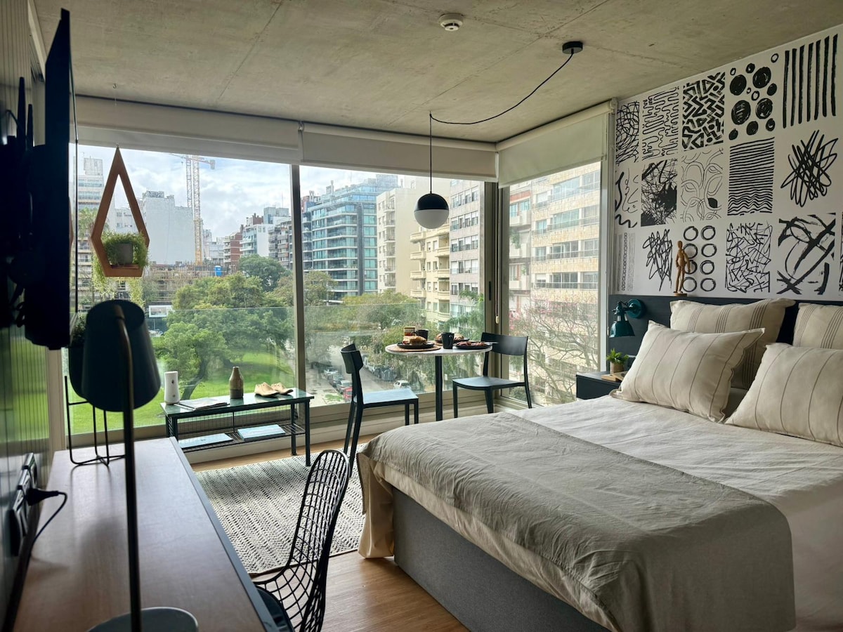 Дизайн з видом на парк і море на найкращому місці Пунта-Карретас Ця студія ідеально підходить для відпочинку та задоволення під час відвідування Монтевідео. У межах прогулянки від ресторанів, барів, торгового центру та гольф-клубу. Кондиціонер, Wi-Fi, Netflix, відео Prime, Nespresso® з капсулами преміум-класу, бавовняні рушники, бавовняні простирадла з високою кількістю ниток. Самостійне прибуття та постійний доступ під час вашого перебування з Yale® Smart Lock.