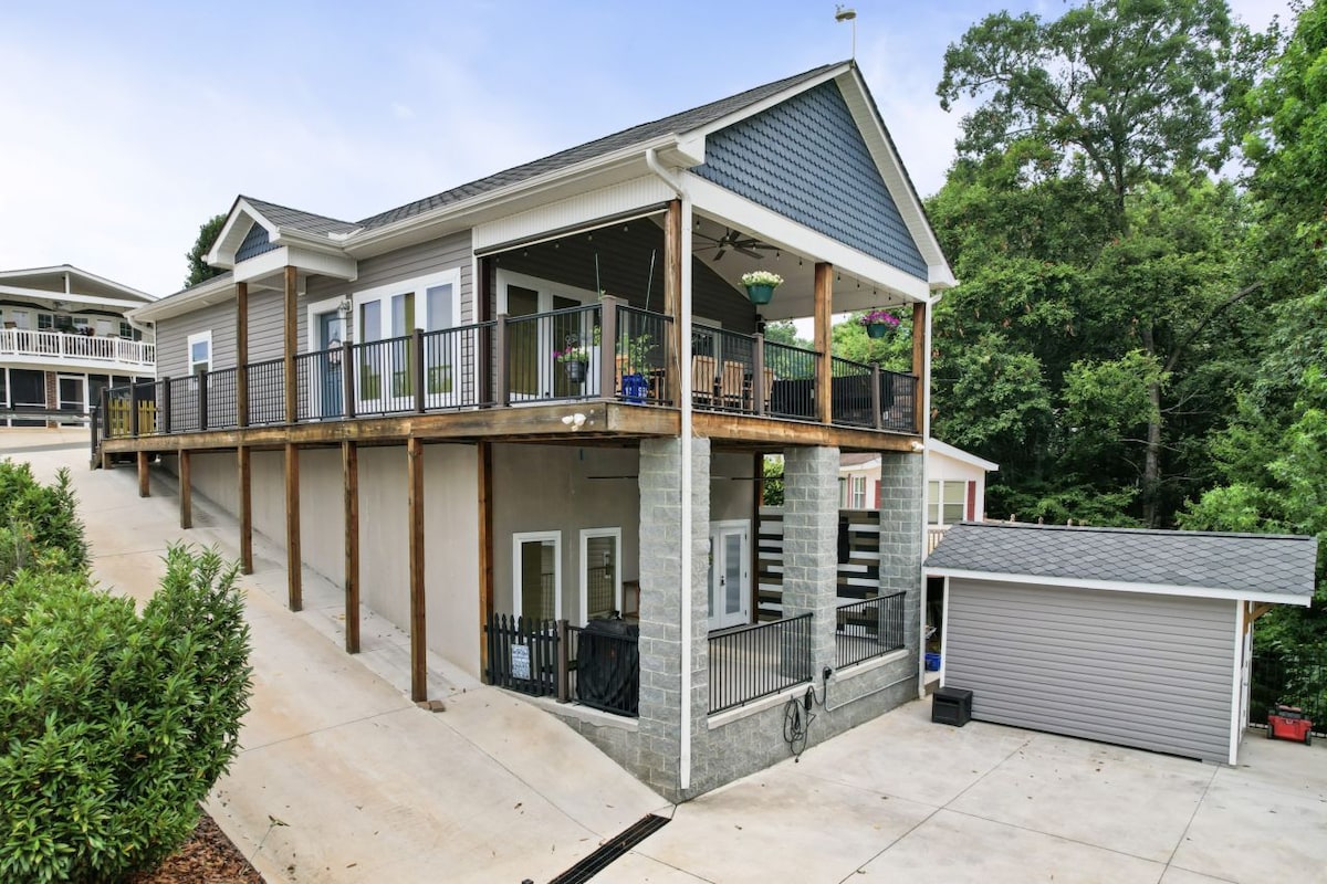 Чудовий абсолютно новий будинок для відпочинку на березі озера з наземним басейном з підігрівом/охолодженням! У цьому будинку є 5 спалень(3 x King, 3 x Queen, 3 x Full, 2 x Twin) і 6 повноцінних ванних кімнат, який забезпечує достатньо простору та заходів для гостей! У цьому помешканні також є гараж на 3 автомобілі, екранована веранда, відкрита веранда, обідні зони в приміщенні та на відкритому повітрі, центр напоїв і пральня (2), сховище на озері, причал для човнів і достатньо місця для паркування кількох транспортних засобів, включаючи місце для автомобіля + причіп для човнів.