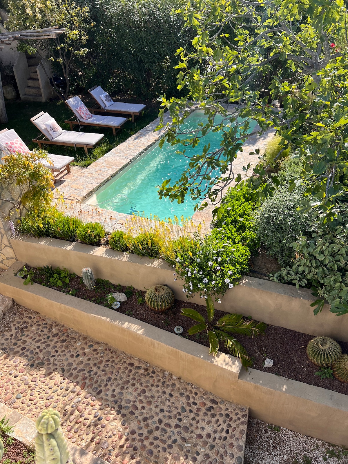 З нашого помешкання відкривається прекрасний вид на гори. Ви поділитеся з нами басейном 6x3M. До пляжу можна дійти пішки. Повністю відремонтований нами, з унікальним і вишуканим декором. У спальні є 2 окремі ліжка, а У вітальні - диван-ліжко 140x190. Тераса обладнана кріслами, столом, стільцями, барбекю. Усамітнений у величезному саду ви будете в абсолютному спокої. Ваші діти та домашні тварини зможуть безпечно пересуватися