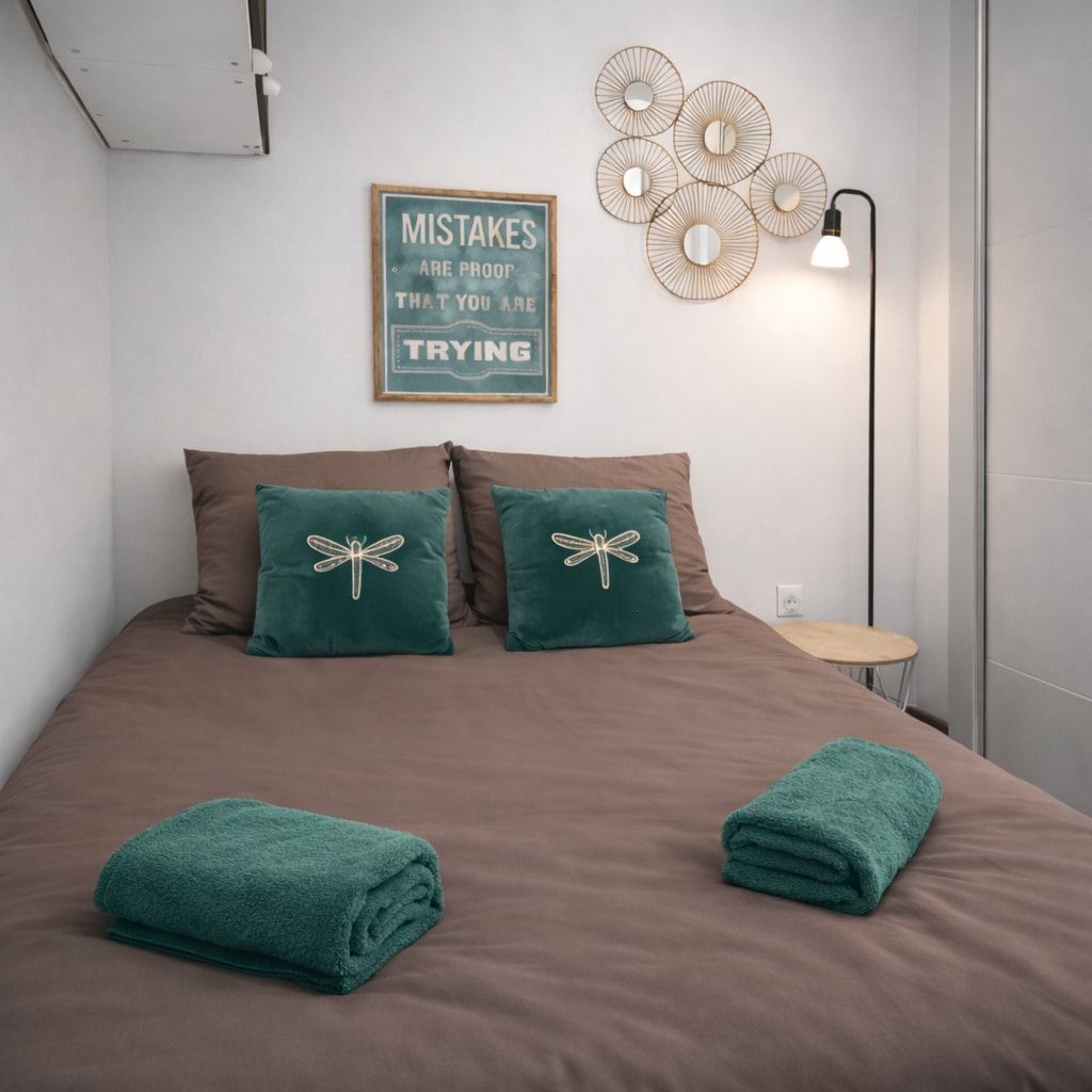 Нова квартира-студія з мобільним кондиціонером, посудомийною машиною, індукційним столом, мікрохвильовою піччю, телевізором, можливістю сніданку або перекусу в пекарні в 150 метрах. Численні громадські паркувальні місця поблизу, Intermarche, Aldi, газовий насос, центр міста за 700 метрів, залізнична станція в 15 хвилинах ходьби. Надаються простирадла та рушники та рушники, є кава та чай. Можливість забронювати помешкання в останню мить, 100% самостійне прибуття ви прибуваєте в потрібний час.