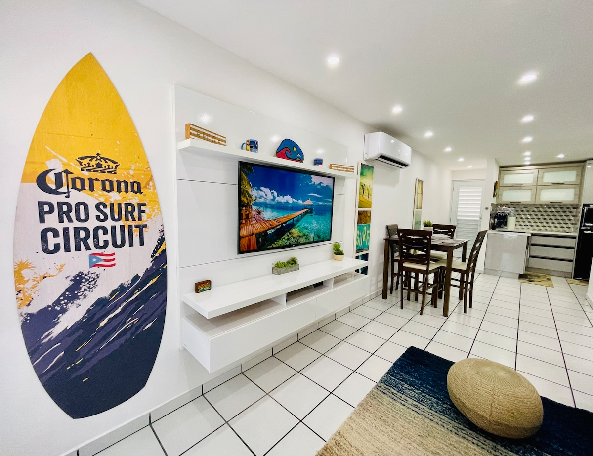 Відпочиньте в цій чарівній квартирі з 1 спальнею та 1 ванною кімнатою всього в декількох кроках від пляжу Монтонес. У спальні є кондиціонер, повністю обладнана кухня та зручна вітальня – ідеально підходить для відпочинку після дня на сонці. Ви будете в декількох хвилинах ходьби (15–20 хвилин) від пляжу Джобос, місцевих ресторанів, барів, магазинів тощо. Незалежно від того, чи ви тут, щоб займатися серфінгом, досвідом або просто відпочити, це ідеальне помешкання для вашого перебування.