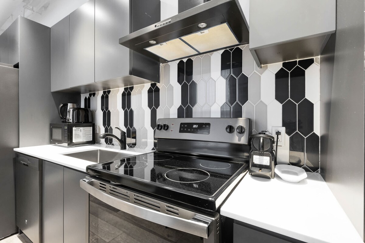 Зупиніться в центрі подій у цій стильній квартирі з однією спальнею в центрі Монреаля. Розташоване прямо на вулиці Сент-Кетрін-стріт-Вест, помешкання знаходиться всього в декількох хвилинах ходьби від Центру Белл, магазинів світового класу, ресторанів, кафе та нічних клубів. Ця квартира ідеально підходить для бізнес-мандрівників, пар або невеликих груп і поєднує в собі сучасні зручності з яскравим духом міста.