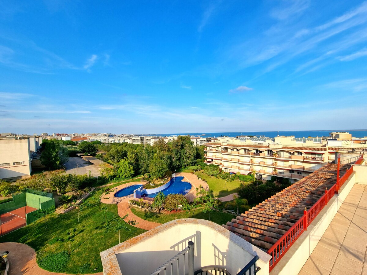 Сонячний пентхаус із басейном, тренажерним залом і паделем | 15 хв. до пляжу