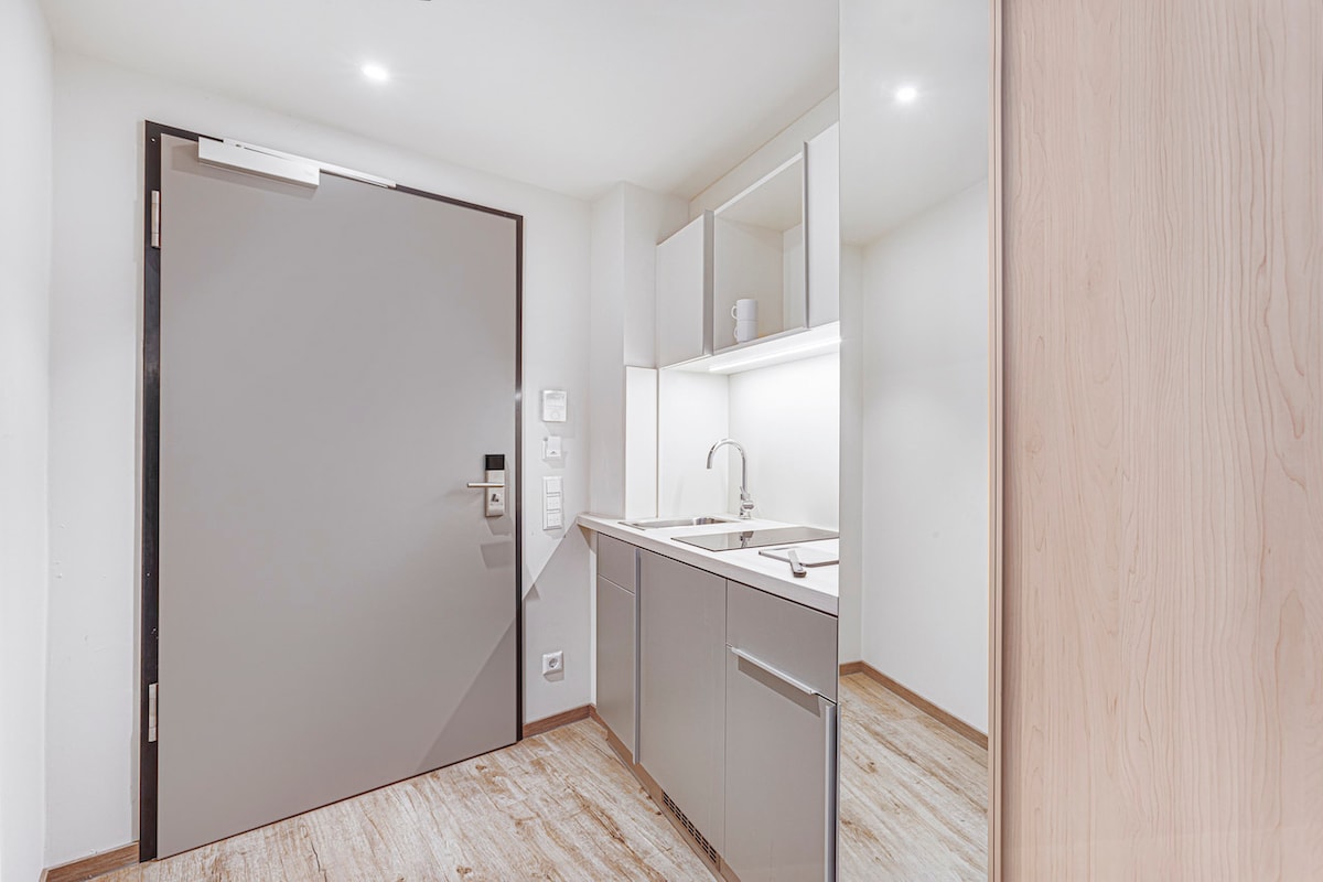 Прибувши до Мюнхена і одразу почати життя... ПРАПОР Мюнхен М. пропонує все необхідне, щоб почуватися комфортно! • Зберіть нову енергію в приємному ліжку з надзвичайно великою ковдрою та гарантією • Серфінг через Інтернет через власний маршрутизатор з LAN, Wi-Fi та USB-зарядним пристроєм на ліжку • Вправа в яскравому тренажерному залі з сучасною технікою • Насолоджуйтеся заходом сонця на великій терасі на даху з приємним напоєм. • Господар 24/7: контактна особа на місці 24/7