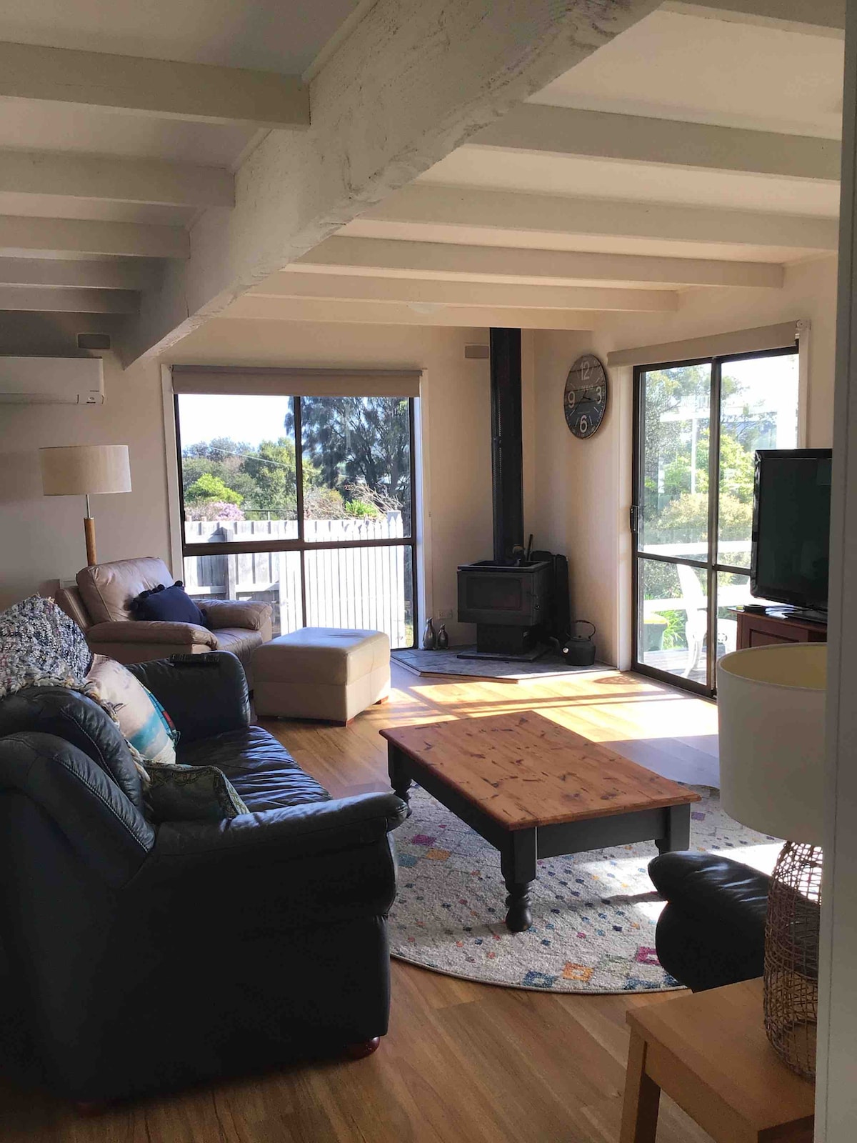 Затишний котедж на узбережжі Цей затишний котедж є частиною котеджів Blue Moon Cottages, трьох красиво оформлених котеджів всього в 250 метрах від пляжу на пляжі Рай на південній околиці півострова Морнінгтон. Цей котедж, наповнений характером, прикрашений тонкою класичною нейтральною темою. Він достатньо великий, щоб розмістити пару або сім 'ю з немовлям. Котедж також підходить для домашніх тварин із відкритим двором, який повністю огороджений, а всередині можна перебувати з домашніми тваринами. Життя: у заміському будинку в дерев 'яному інтер' єрі є затишна лаунж із дров 'яним вогнищем для зимового відпочинку та французькими дверима, що ведуть у двір влітку. Шкіряний стілець і зручний диван створюють відчуття зрубу для зрубу в кімнаті. Відпочинок відкривається далі в обідню зону з чотирма стільцями та повністю обладнаною кухнею. Спальні місця: на території є велика спальня з килимовим покриттям, красиво оформлена з підвісними приліжковими лампами, кованим залізним ліжком Qeen та настінним телевізором. Ванні кімнати: сучасна нещодавно відремонтована ванна кімната з душовою кабіною На сайті Blue Moon Cottages є спільна пральня з пральною та сушильною машиною. Опалення та охолодження: зворотний велосипедний обігрівач і кондиціонер, а також додаткові настінні обігрівачі знаходяться в їдальні та спальні Парковка: є парковка на вулиці для одного автомобіля Можна з домашніми тваринами: домашні тварини приймаються всередині, однак, оскільки котедж і двір невеликі, ми рекомендуємо лише маленьких собак. Повністю закритий сад у дворі має відкриту розважальну зону з барбекю. Sandpiper - це ідеальний пляжний відпочинок як влітку, так і взимку. У вашому помешканні далеко від дому є все необхідне для спокійного відпочинку: кондиціонер, телевізор із плоским екраном, DVD, Wi-Fi, вогонь, барбекю, приватний сад у дворі, обідня зона на відкритому повітрі та парковка для автомобілів Це помешкання з самообслуговуванням, і кімната не обслуговується щодня. Однак вся білизна, рушники, основні кухонні приналежності та туалетно-косметичні засоби надаються до вашого прибуття. Фотозйомка. Фотозйомка постійно оновлюється після внесення серйозних змін у помешканні, однак незначні зміни меблів або постільної білизни можуть відрізнятися від поточних фотографій. Зверніть увагу: політика заборони SCHOOLIES