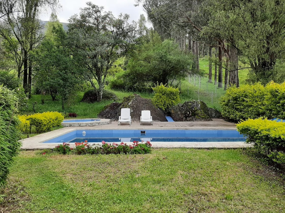 Quinta vacacional con piscina, áreas verdes, jardines cancha de fútbol voleibol, juegos infantiles, barbacoa, área de la fogata, trapiche, salón de actos, cabaña con hamacas , plantas ornamentales, aromáticas y frutales La casa es de madera con 3 dormitorios, sala, cocina, desayunador y comedor, 2 baños completos y 2 medio Baños, un sofá cama, equipo de música, hamacas, wifi, Netflix, tv cable, se respira tranquilidad, relájate con tu familia y/o amigos!, todas las instalaciones a tu disposición