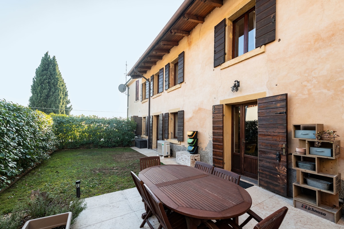 Rilassarti in un antica corte, a 10 minuti dal centro storico, sarai immerso nella natura con una vista panoramica spettacolare sulle colline. Piano terra con terrazzino esclusivo. Goditi la tranquillità dell'appartamento e la comodità del parcheggio privato in un atmosfera bucolica. Sarai vicino a cantine, frantoi e ville storiche. ARENA 10-15 minuti in auto. FIERA 20 min. Aeroporto 25 min. Parco naturale della Lessinia a 30 min. Lago di Garda 30 min. CIN: IT023091C2CSZUDN4G