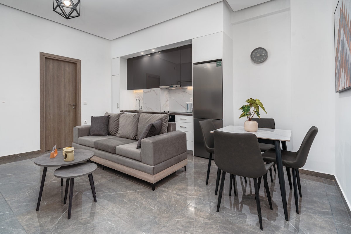 Квартира розташована в центрі Пірея та поруч з портом. Метро, з 'єднання з аеропортом, пороми, поїздами, приміськими поїздами, автовокзалом і трамваєм - усе це в межах 100 метрів. Центральне розташування!! Квартира, в якій ви збираєтеся зупинитися, абсолютно нова і повністю відремонтована з 2 невеликими спальнями, кухнею, вітальнею, площею 45 квадратних метрів із високими стандартами та спроектована чудовим архітектором. Розташована на 5-му поверсі. Це зручно і розкішно, щоб зробити ваше перебування незабутнім!