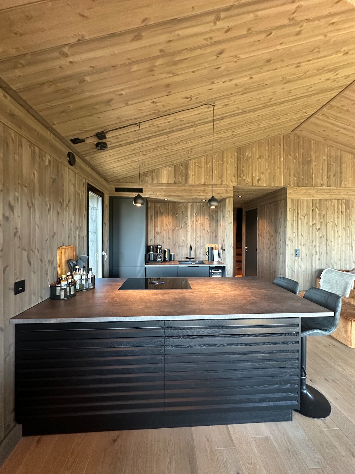 Ваш ідеальний романтичний відпочинок у FURU, Норвегія Чудовий зруб на південному сході з прекрасним видом на небо та схід сонця. Інтер 'єр у світлій колірній гамі, схожий на довгі літні дні. Насолодіться приватною гідромасажною ванною в лісі за 500 норвезьких крон за перебування, бронюючи заздалегідь. Вікна від підлоги до стелі з затемненими шторами, підлоговим опаленням. Ліжко king-size, міні-кухня з 2 тарілками, обладнана високоякісним посудом, зручна зона відпочинку. Ванна кімната з дощовим душем, раковиною та туалетом.