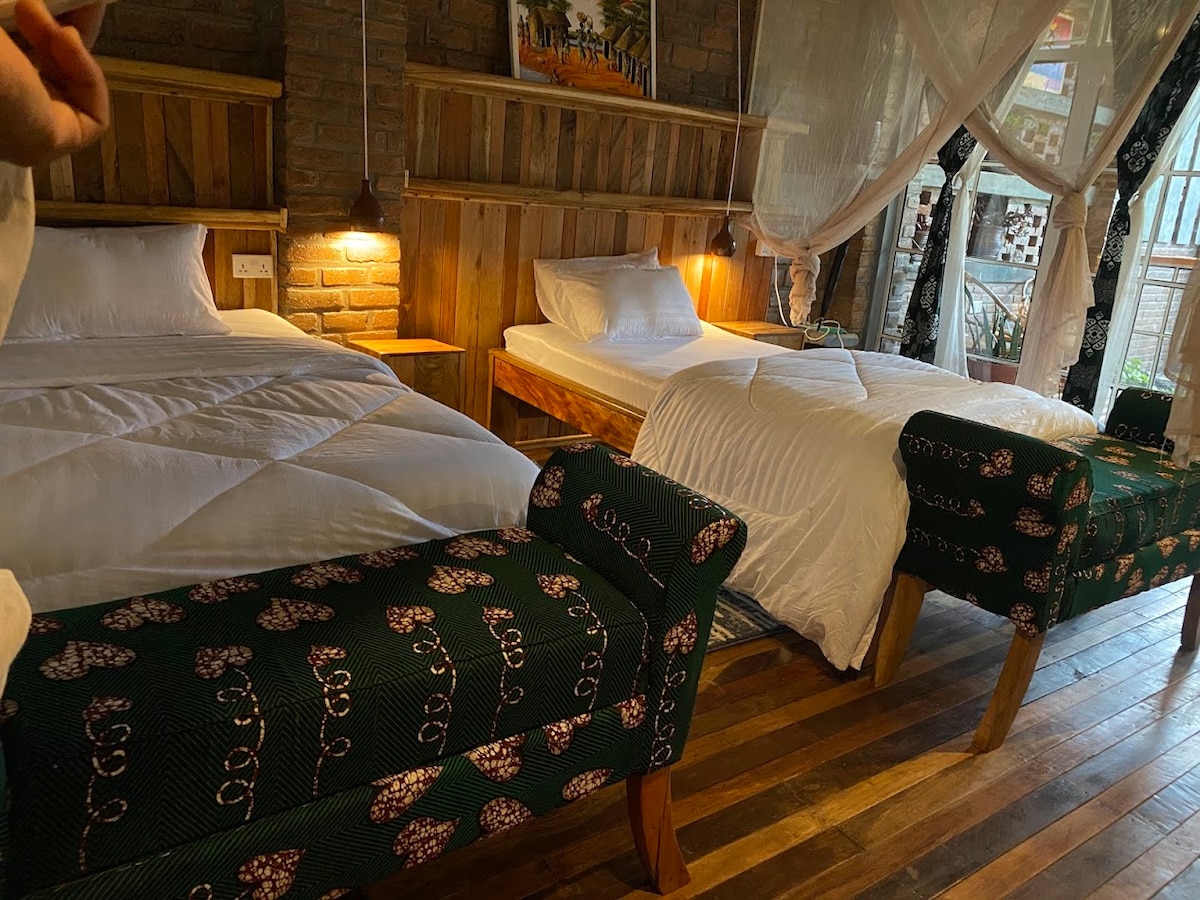 З цих номерів на першому поверсі відкривається краєвид на сад, а з приватного балкона – прямий краєвид на гору Кіліманджаро. Котеджі з балконом і великими ліжками Усього: 2 кімнати (коттедж 1 або 2) Ці 2 кімнати можна облаштувати як двомісні з двома ліжками / двомісні з одним ліжком / одномісні (двомісні з двома ліжками за наявності) Максимум: 2 гості на кімнату Доступно для людей на інвалідних візках З цих кімнат можна легко дістатися до ресторану на першому поверсі, таких зон, як сад, стійка реєстрації та сувенірний магазин (після завершення будівництва). До ресторану на верхньому поверсі можна дістатися лише сходами.