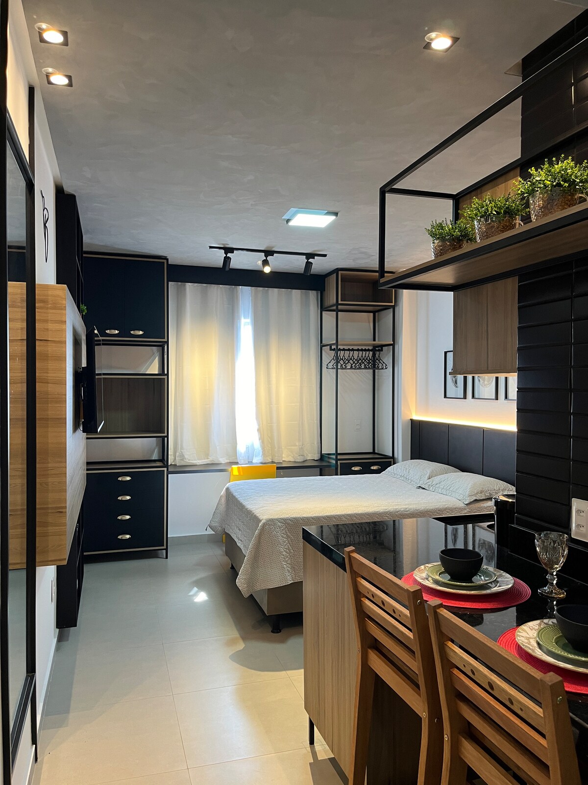 Студія з красивим декором в індустріальному стилі в центрі міста. Обладнано новими меблями. У кондомініумі є спільні приміщення: тренажерний зал, навчальна кімната, кав 'ярня, велостоянка та, у комерційному крилі, міні-маркет, аптека та магазини. Перед містом Атакадан, в декількох метрах від магазину Partage і дуже близько до основних барів і ресторанів міста. Безпечне місце з цілодобовим консьєржем. Є приватний паркінг на 50 місць.