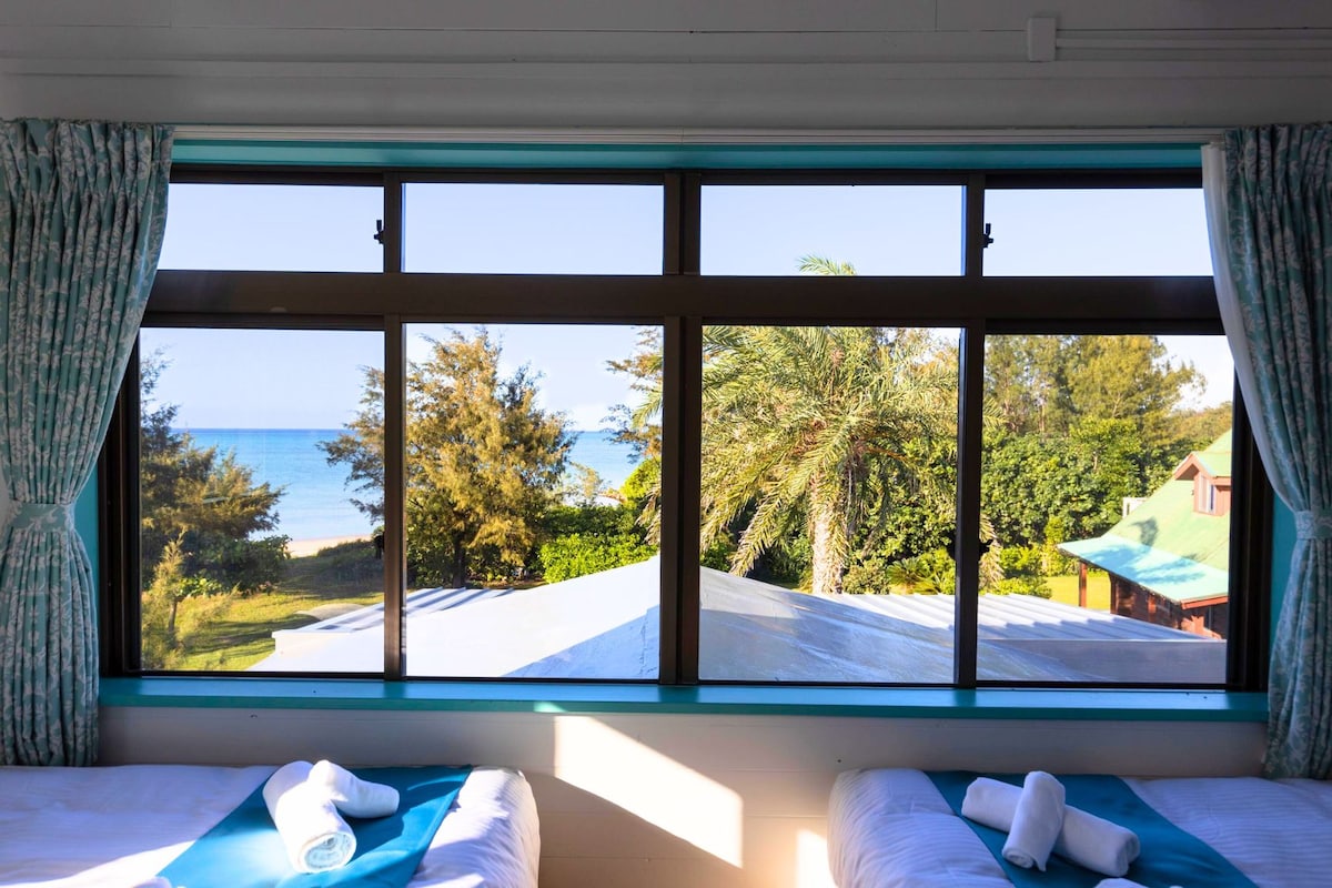 Вид на океан · 3 спальні · Простора квартира 55 кв. м Насолоджуйтеся приголомшливими океанськими краєвидами з цього кутового помешкання на верхньому поверсі. Ця простора квартира площею 55 кв. м має 3 окремі спальні, ідеально підходить для сімей або груп. Лише 3 хвилини пішки до пляжу Анчі, відомого найчистішою водою на головному острові Окінави. На першому поверсі будівлі розташовані популярна кав’ярня з морозивом та японське кафе з солодощами. Вони також подають сніданок у затишній атмосфері в японському стилі — дуже зручно!