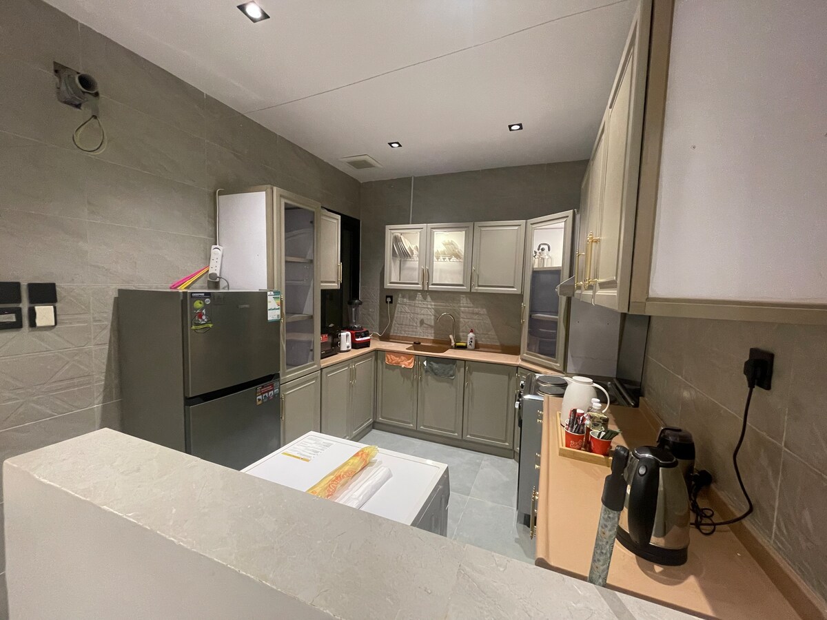 The flat is specious and suitable for up to eight members family. The guests will enjoy easy access to many things from this centrally located place. The furniture is high quality and stylish pieces. There is two sections, one has two bedrooms with attached bathroom in each bedroom. There is also fully equipped kitchen and a comfy living room. The other section has also two bedrooms with shared bathroom. We are only a call away if you need anything.