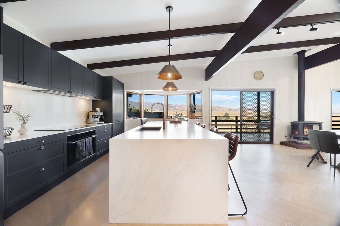 Спокійний відпочинок у горах над долиною Ванділігонг. Pebblebank on Morses пропонує повний спокій із панорамними краєвидами, заспокійливими інтер’єрами, ліжками розміру King size з культивованим постільним білизном. Дерев’яний камін Cheminee Philippe, кухня Miele, йога в затишній кімнаті, дихання гірським повітрям на плаваючій терасі. Французькі двері відкриваються з кожної спальні, щоб ви могли засинати під звуки річки Морзес-Крік. Справжній оазис для відпочинку, омолодження та відновлення, створений для тих, хто шукає розкоші та спокою.
