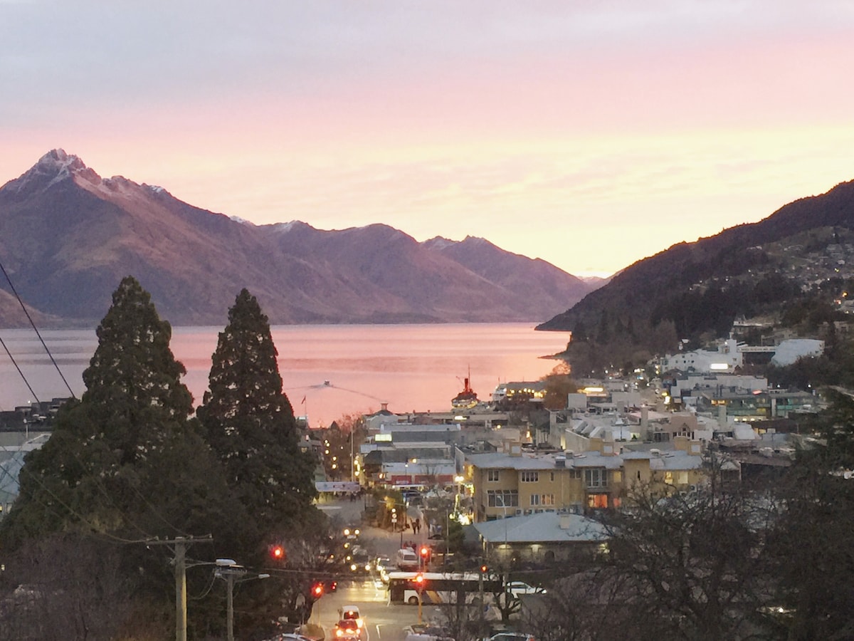 Окрема кімната (прикріплена до головного будинку) з однією спальнею, ванною кімнатою, міні-кухнею, вітальнею, гідромасажною ванною та зоною відпочинку на відкритому повітрі з видом на пристань і The Remarkables. Кафе, пивоварня, винні бари - 2 хвилини ходьби. Зверніть увагу, що це спільна під’їзна дорога, а спа-центр знаходиться на під’їзній дорозі. Ми абсолютно поважаємо приватність кожного гостя. Ми будемо користуватися спільною під’їзною дорогою, щоб потрапити до помешкання, але в нас будуть два окремих входи. Зверніть увагу, що помешкання невелике й затишне, тому воно розраховане лише на двох гостей.