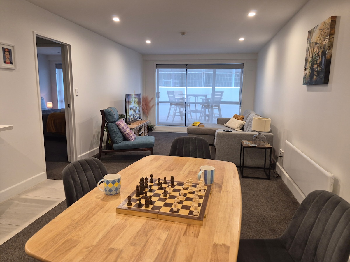 Свіжий і чистий інтер 'єр, тихий і спокійний. Лофт розташований через дорогу від «гори» та гідромасажних басейнів у центрі Маунгануї. Найпопулярніші пішохідні стежки в затоці Пленті неподалік від вас. П 'ять хвилин ходьби до зайнятих кафе, барів та магазинів. 75 кв. м схованки в жвавому районі. Дві хвилини ходьби до океанських пляжів і гавані. Протягом наступних 12 місяців по сусідству з понеділка по п 'ятницю (не вихідні) триватиме будівництво. Там буде певний шум.