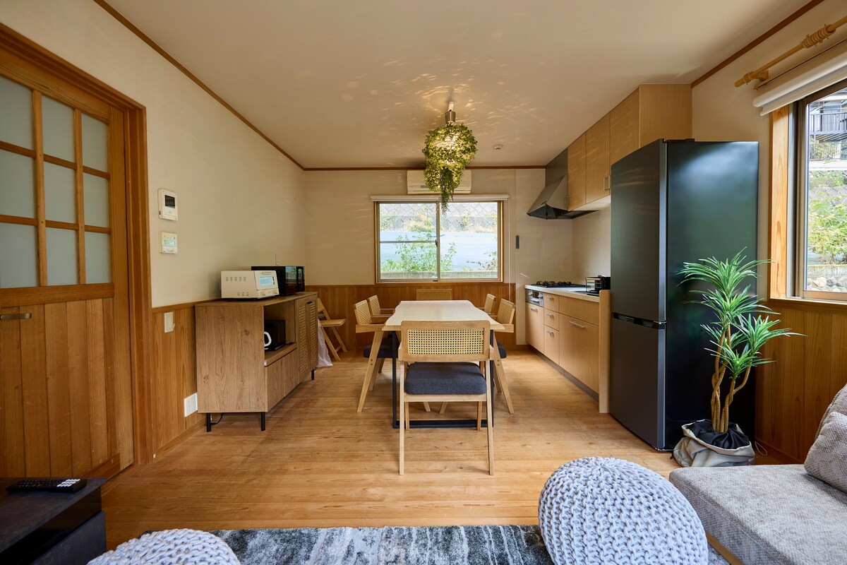 Just a 3-minute walk from Mitake Station, Mitake House is a private riverside cottage perfect for nature lovers. The home features a living-dining area, bath, and two bedrooms (futons and single beds). Enjoy a hammock and wood stove for a glamping feel. Early check-in from 12:00 lets you relax from the moment you arrive. The Mitake area offers hot springs, shrines, museums, hiking, rafting, SUP, canyoning, canoeing, and cycling. Only 1.5 hours from central Tokyo.
