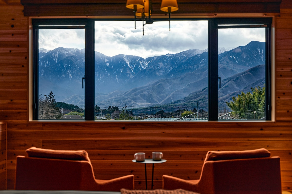 Вілла з великою терасою перед Яцугатаке є приватною, тож ви будете користуватися нею самостійно. Це зручна гірська вілла, розташована за 10 хвилин від розв’язки на швидкісного шосе Чуо. Однак неподалік немає станції чи магазину, тому обов’язково приїжджайте на автомобілі.Рекомендуємо приїхати автомобілем або орендованим автомобілем від станції Каяно. У холодну пору року вітальня, їдальня, кухня, засклена тераса та ванна кімната опалюються за допомогою системи теплої підлоги, що забезпечує комфорт.Ви можете самостійно рубати дрова та користуватися дров’яною піччю. У теплу пору року ви також можете насолоджуватися барбекю на великій дерев’яній терасі перед сонячною кімнатою. У межах 10 хвилин їзди є 2 великі супермаркети, де легко купити їжу. Вона може вмістити до 6 гостей, і в ній є шикарна 2-кімнатна спальня та лофт над вітальнею. Можна бронювати на 5 ночей і більше.На той час знижки встановлюються залежно від дати, тому, якщо ви плануєте перебування тривалістю 5 ночей, зв’яжіться з нами.Після цього ви зможете отримати знижку за спеціальною пропозицією від власника. Домашні тварини розміщуються безкоштовно, але зв’яжіться з нами, якщо ви берете з собою більше одного собаки.