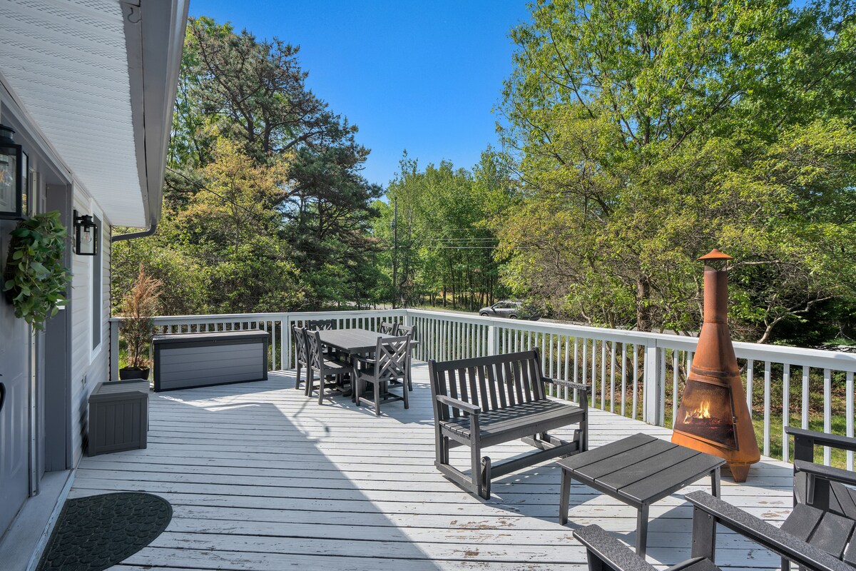 Quick drive to slopes & short walk to the lake beach - Poplar Cottage is a clean, modern 3 bed/2 bath renovated with thoughtful design that encourages total relaxation. ★ "This place is amazing!" ★ "Definitely worth the booking!" - Fully equipped kitchen - 2 seat kayak - Spacious deck w/chiminea - Solo Stove firepit - Washer + Dryer - Gas grill - Smart TVs - Sonos speakers » 5 min drive to Lake Harmony » 6 min drive to Pocono Raceway » 8 min drive to Big Boulder ski resort