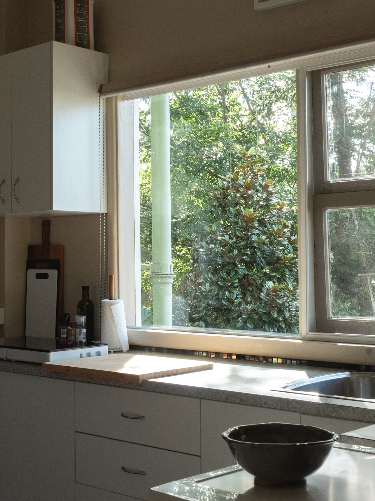 Нещодавно відремонтована квартира, спроектована архітектором, розташована серед дерев з видом на місто на океан. У квартирі є вітальня відкритої плани,їдальня та кухня з комфортним місцем для сидіння та робочим столом, який виходить на сонячну обгортку навколо веранди, до якої можна дістатися через дерев 'яні розсувні двері. Одна з 2 квартир на першому поверсі, повністю приватна Власники живуть нагорі. Кілька сходів через сад до входу. Немає поручня. Не рекомендується гостям з проблемами мобільності