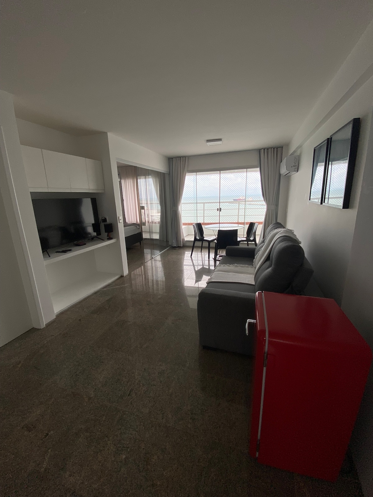 Apartamento a beira mar em frente ao mercado dos peixes! O apartamento possui um quarto suíte, sala, cozinha, sala de jantar e lavabo. É possível dormir 3 adultos (2 na cama king do quarto suíte e 1 no colchão inflável na sala ou no sofá cama ) O apartamento possui ar condicionado na sala e no quarto o espaço fica todo climatizado, duas Tvs smart , cafeteira, liquidificador, batedeira, air fryer e todos os utensílios necessários para que você tenha uma excelente estadia em fortaleza!