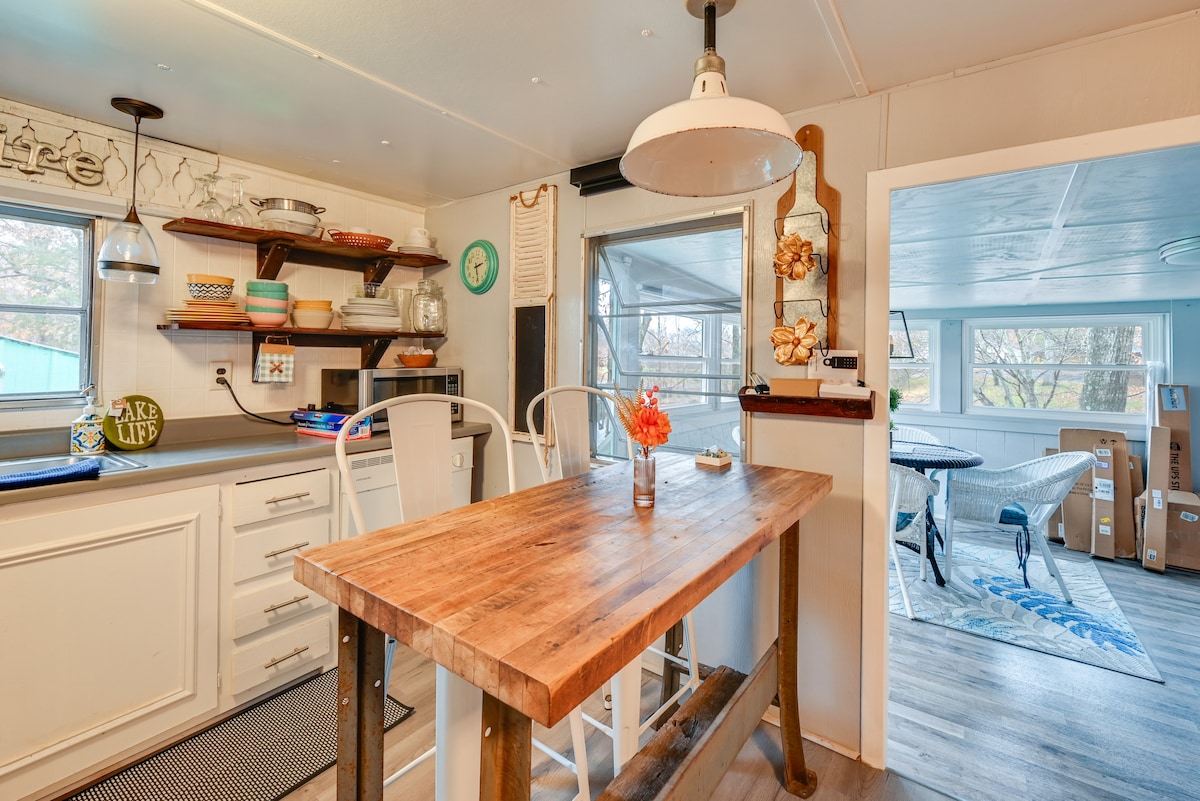 **НЕЩОДАВНО ВІДРЕМОНТОВАНИЙ** Ласкаво просимо до нашого будинку біля озера! Завдяки вражаючим скелям і тихим водам ви зможете розслабитися в цьому дивному й дивному зрубі. У вас є доступ до власного приватного причалу та 5 байдарок (4 для дорослих/1 для дитини) та 2 веслових дошок разом з усім необхідним для виходу на воду. Приїжджайте на власному човні, якщо хочете! Ми знаходимося в 20–30 хвилинах від продуктових магазинів, тому, будь ласка, сплануйте свою подорож відповідним чином. Курортний готель Shady Cliff працює за сезонним графіком, який можна переглянути на його вебсайті