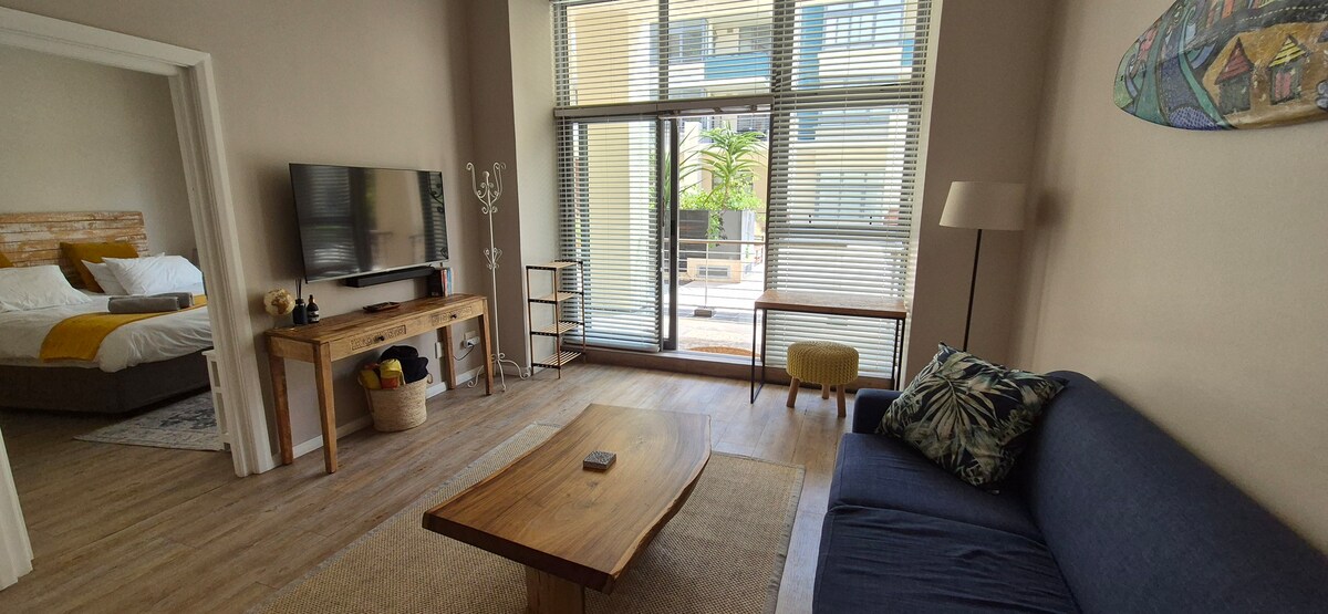 Спокійна та стильно оформлена гостьова студія у відомому історичному селі Муйзенберг. Помешкання знаходиться всього за кілька кварталів від пляжу, Палмер-роуд і ринку Блу Берд. Ідеально підходить для пар або одиночних мандрівників, тут є окремий вхід, напівприватний садовий куточок з дивовижним видом на гори, велика окрема ванна кімната та Wi-Fi 50 Мбіт/с. Насолоджуйтеся необов 'язковими домашніми сніданками та вечерями, приготованими з якісних інгредієнтів. Відпочиньте після напружених днів, досліджуючи прибережний шарм Кейптауна. Яка атмосфера!