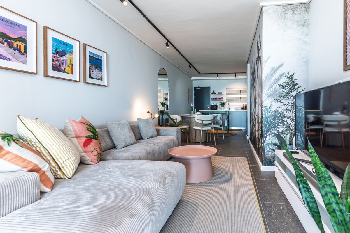 Ласкаво просимо до Deco Corner, нашого солоного помешкання на березі моря, яке знаходиться всього за крок від головного пляжу для серфінгу Муйзенберга. Розміщена в культовій ретро-будівлі 1930-х років, наша простора квартира на першому поверсі розташована в старій еклектичній богемній частині цього знаменитого серфінгового міста. У безпосередній пішій доступності до всіх зручностей та магазинів. У нас є паркувальне місце поза вулицею за воротами безпеки. Ви будете розташовані в центрі Південного півострова, недалеко від приливних басейнів, пінгвінів, мису Кейп-Пойнт та інших туристичних заходів