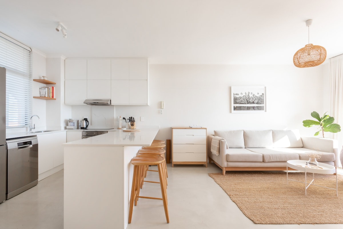 Стильна, преміальна квартира на першому поверсі, одна спальня в новому комплексі Wavescapes, всього в декількох кроках від Surfer's Corner. Почніть свій день із занурень на сході сонця та видом на океан із простої веранди, а потім відпочиньте в гарно обставленому, комфортабельному просторі з високошвидкісним Wi-Fi. Ідеальне розташування для серфінгу, пляжної культури, ресторанів та дослідження найкращого на південному півострові. Галереї, місцеві театри, приливні басейни та багато іншого знаходяться поруч.