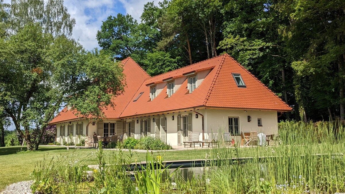 Спокій, природа та відпочинок – наш чарівний фермерський будинок у затишному місці пропонує вам саме це. Завдяки власному лісу, ставкам і лугу це ідеальне місце для пар або сімей зі старшими дітьми, які хочуть розслабитися. Насолодіться каміном, тишею та краєвидом на сільську місцевість. Мюнхен і гори знаходяться всього в 35 хвилинах їзди, шопінг у Вольфратсхаузені. Просимо з розумінням поставитися до нашої вимоги: без маленьких дітей і домашніх тварин.
