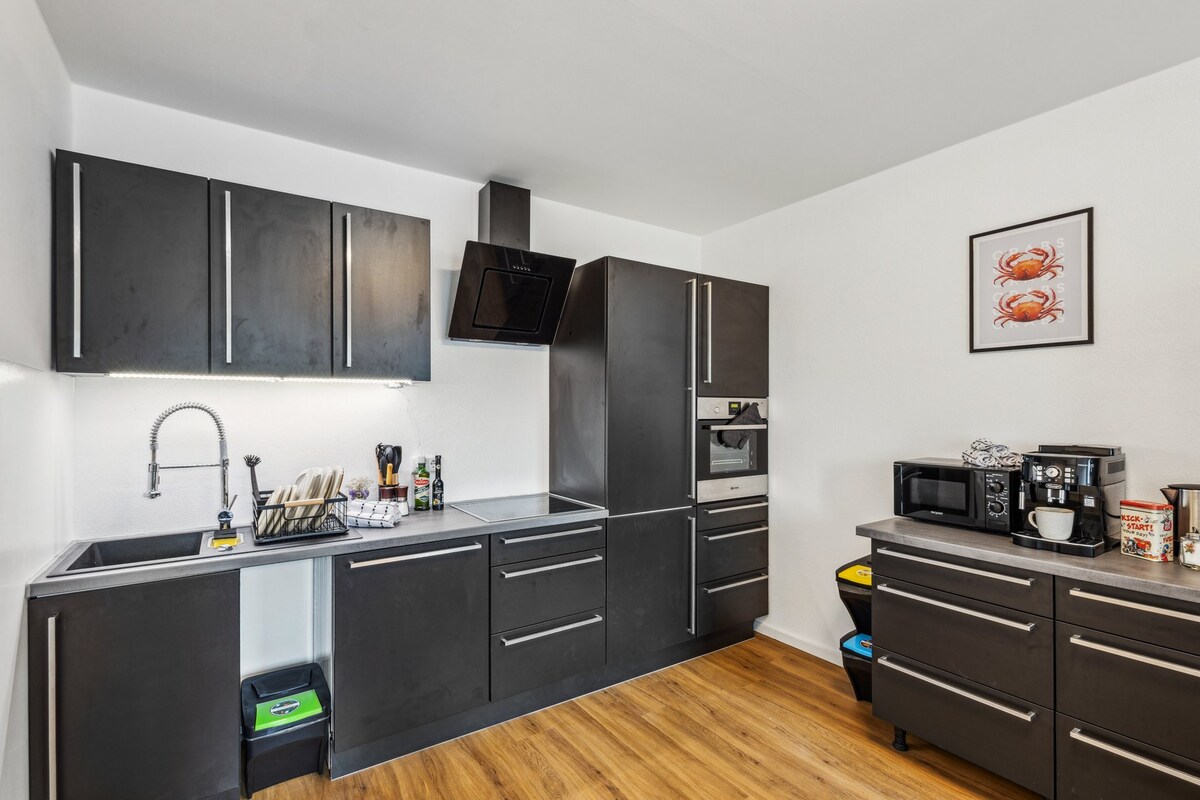 Schlafen Sie erholsam in hochwertigen Boxspringbetten, die nach Ihrem Wunsch flexibel nutzbar sind – als Doppelbetten oder Einzelbetten. Erleben Sie bestes Entertainment mit vier 4K-TVs und vorgezähltem Waipu TV – über 300 Channels! Dank Glasfaser-Internet surfen Sie blitzschnell. Die moderne Küche mit Induktionskochfeld und Delonghi-Kaffeeautomat sorgt für höchsten Komfort. Perfekt für Geschäftsreisende, Familien und Touristen – München-West ist über die Autobahn in 20 Minuten erreichbar.