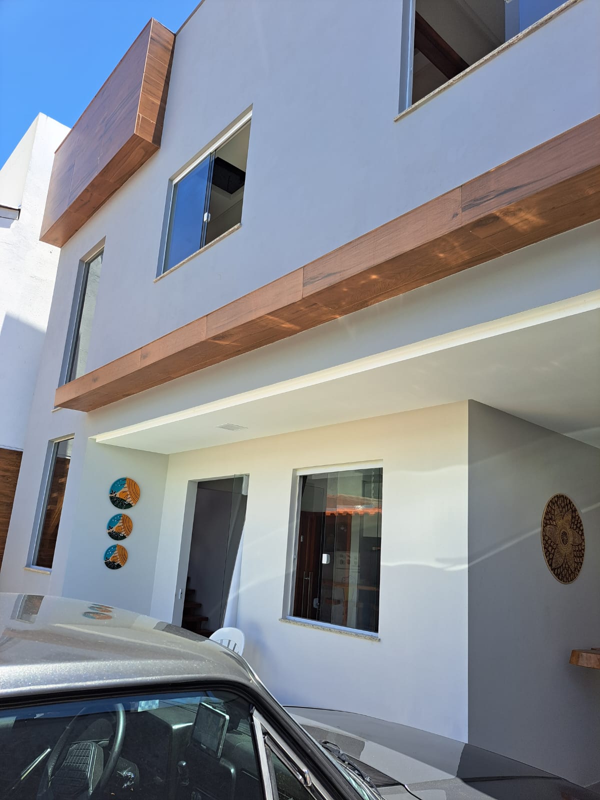 Sobrado com 224 m² em Guaibim há apenas 3 minutos de caminhada da praia Piscina adulto e infantil com 32m2; 4 suítes com Ar Condicionado 4 camas de casal, 4 camas de solteiro;1 beliche,1 Lavabo;área de serviço;varanda ampla no primeiro andar; cozinha moderna em conceito aberto com 1 fogão cooktop, 1 forno convencional, 2geladeiras 1 freezer; sala ampla com sofá, TV,Wi-Fi. Amplo terreno para estacionamento, churrasqueira, forno e fogão a lenha, chuveiro de praia, armário cozinha.