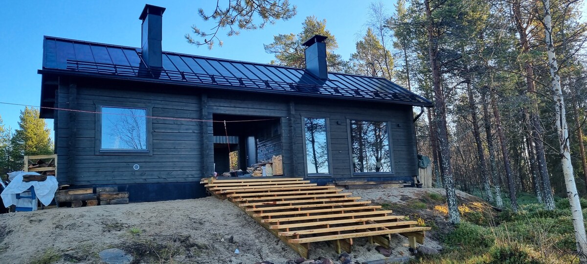 Новий будинок для відпочинку в чудовому місці біля озера без сусідів, але поруч із центром міста та послугами. Помилуйтеся пагорбами Олос і Паллас із панорамних вікон. Коли настане вечір, насолодіться затишком каміна та танцем північного сяйва. Відпочиньте у дворі, слухаючи шум струмка, або покатайтеся на байдарці по озеру під північним сонцем. Тут ви можете дихати найчистішим повітрям у світі. З двору можна вийти на лижні та літні траси. Ласкаво просимо до Tunturi-Lapland. Чистота та тиша – найкраща розкіш.