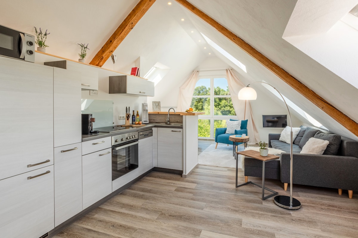 Фантастична квартира на мансарді (130 кв. м) в центрі вулканічного Айфеля, в Мерен/Даун. Ідеальне розташування для мандрівників/велосипедистів, щоб відкрити для себе Маре та Ейфельштайг, оазис для відпочинку. Простора вітальня-їдальня веде до чудової консерваторії з каміном і на терасу з зручними садовими меблями. Вид на місце та долину. Повністю обладнаний комплект. Обидва спальні з двоспальними ліжками (160 см). Від більшої спальні виходу на терасу. Парковка прямо біля будинку. Вітаємо дітей.