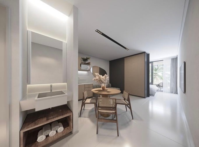 Розслабтеся стильно під час перебування в цьому розкішному помешканні на курорті Porto Alto Resort, розташованому навпроти пляжу Муро-Альто. Квартира з двома кімнатами, вбудована вітальня з міні-кухнею (міні-бар та мікрохвильова піч), великий двоспальний диван-ліжко,TV39 ", кондиціонер. Кімната з телевізором 39", повітрям, балконом, включаючи щоденне зберігання, постільну та банну білизну. Повна ігрова зона з дорослими та дитячими басейнами, ігрова кімната, ресторан зі шведським столом (необов 'язково), тренажерним залом, салоном краси, догляду за собаками, спа (необов' язково).