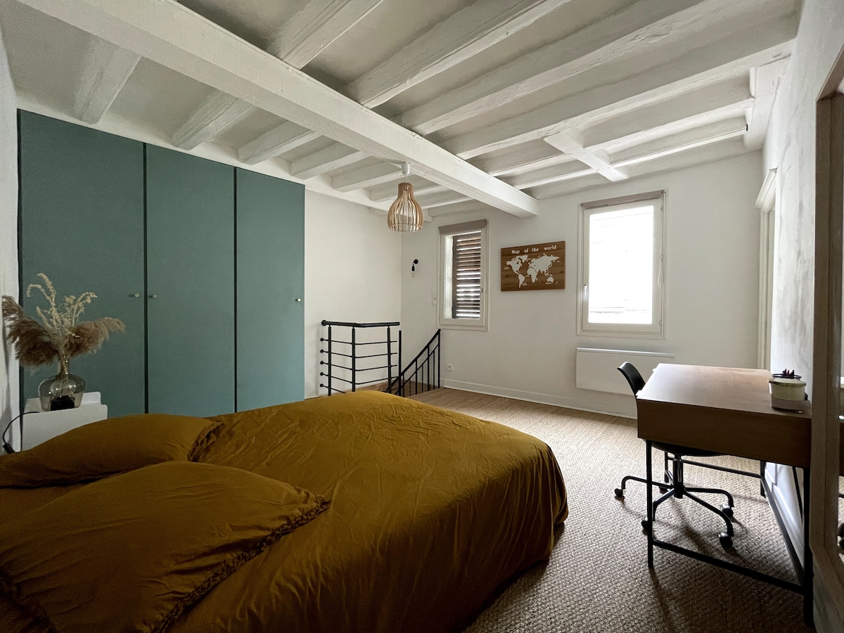 Приходьте і зупиніться в L'Élégant, красивій квартирі, повністю відремонтованій з шикарним стилем і теплою атмосферою! Розташоване в центрі Сомюра, жвавого та туристичного міста, це ідеальне місце для романтичного відпочинку або подорожі з друзями - всього в 50 метрах від пішохідних вулиць і ресторанів. Ви зупинитеся в колишньому таунхаусі з власним садом, справжньою гаванню спокою, яка ідеально підходить для несподіваного відпочинку прямо в центрі міста!