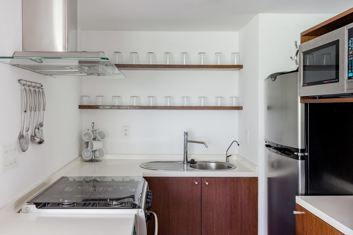 - Сучасна, абсолютно нова будівля - Балкон із видом на парк Мехіко. - Тераса на даху та абсолютно новий тренажерний зал з видом на Парк Мехіко та Реформу - Повністю мебльоване помешкання, призначене для тривалого перебування та корпоративних подорожей. - Безкоштовна пральня. - Послуги з прибирання: раз на тиждень для бронювання на 7 ніч і більше Nido Parque Mexico — неймовірне архітектурне досягнення з найкращим розташуванням у всьому Мехіко, на розі з видом на Parque Mexico, в центрі Ла-Кондеса.