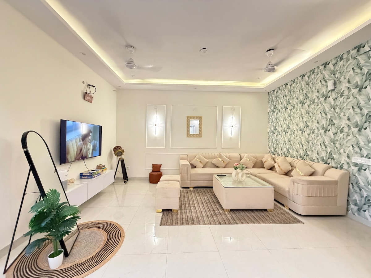The entire home is yours during your stay. 3 spacious bedrooms with attached bathrooms, a cozy living room, dining space, a fully equipped kitchen, a front garden and a quiet backyard. Aangan is perfect for a relaxing getaway, a work-from-anywhere break, or quality time with loved ones. Ideal for long stays and weekend getaways. Early check-in / late check-out available on request.