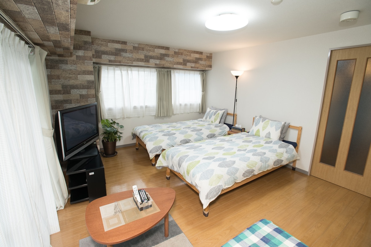 Два односпальні ліжка та один двоспальний диван-ліжко . Проживання для 2-4 осіб . Від нашої квартири до аеропорту ЧУБУ потрібно одну годину (включаючи час пересадки) від станції НАГОЯ до нашої квартири всього за 9 хвилин на поїзді. 。а від нашої квартири до найближчого метро (kurumamichi) займає лише 5 хвилин пішки. до Сакае (центр міста) займає 2 станції. 宿泊予約について 予約者が宿泊されない場合、他人(家族、友達 )が宿泊する事は出来ません。予約者が代理人として予約しても宿泊者が他人(家族、友達)の場合、реєстрація прибуттяの際、承認されません。これは、AIRBNBのルールであり、住宅宿泊事業法で宿泊者管理義務がありますので、禁止されています。