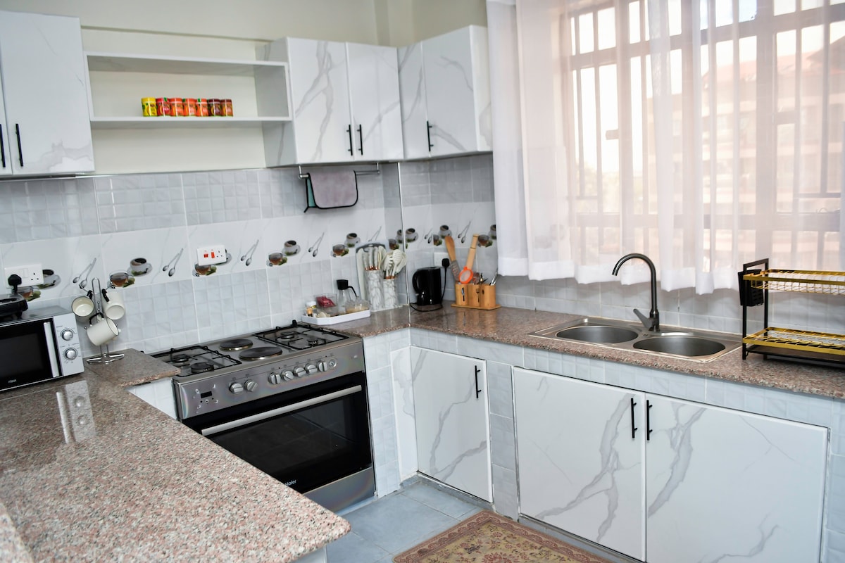 Experience elegant comfort in our cozy modern furnished 1-bedroom apartment.Perfectly located within walking distance to supermarkets,restaurants,cafes,malls and hospitals.The flat offers a cozy living space,modern kitchen,fast WiFi,instant hot showers and secure ample parking with daily housekeeping.Step into the balcony to enjoy the panoramic views of Naivasha sunsets.